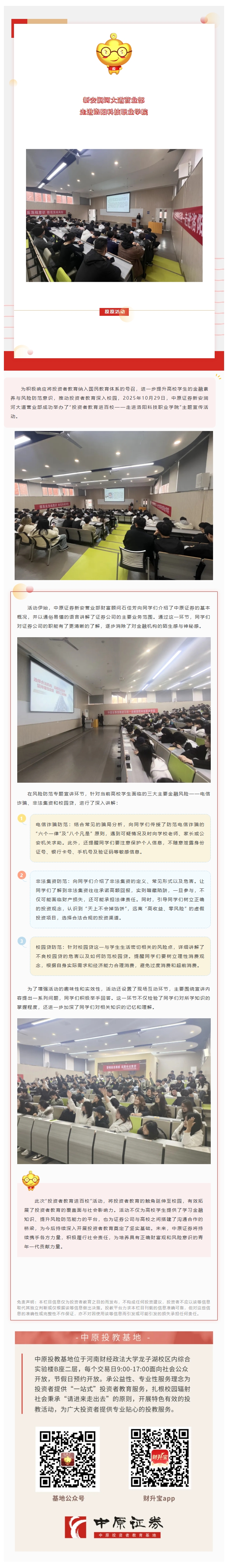 理性投资伴我行 | 中原证券新安涧河大道营业部投资者教育进百校 —走进洛阳科技职业学院