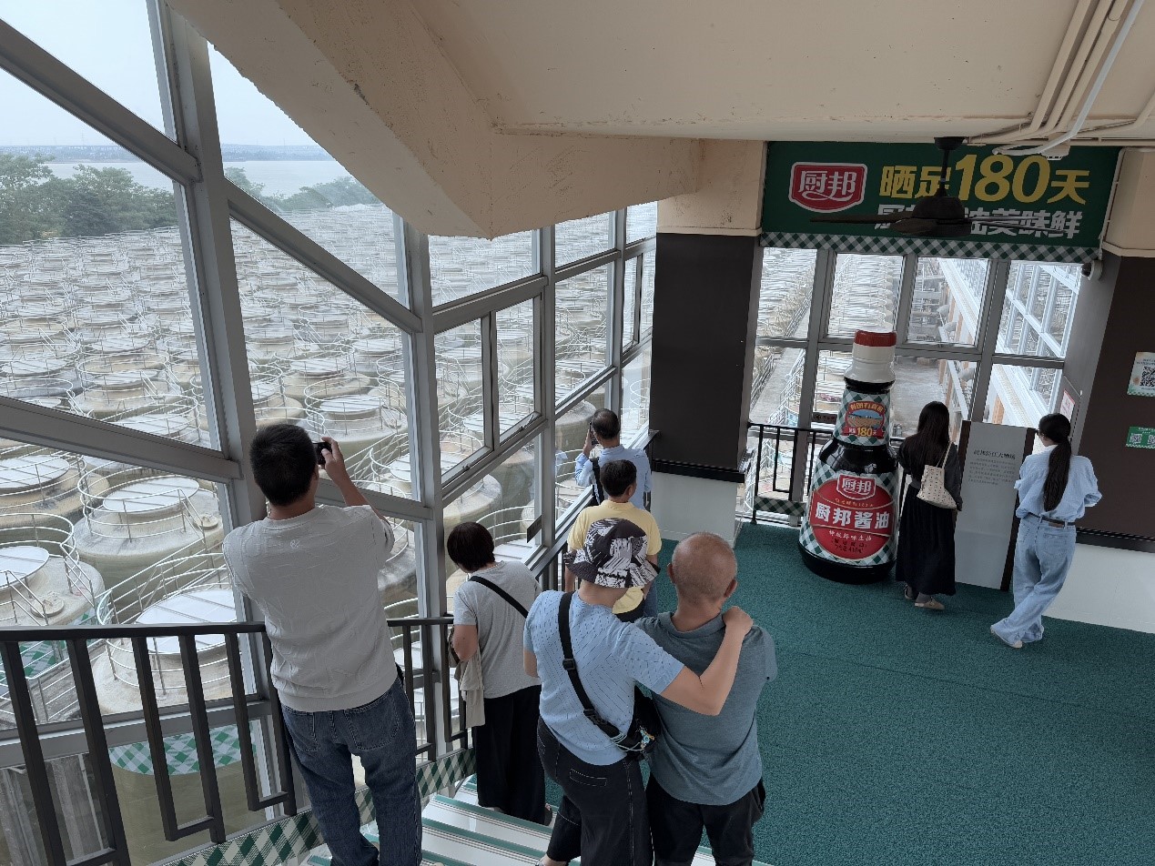 在上市公司董秘办人员的带领下,投资者依次探访了中炬高新厨邦酱油博览馆、生产车间和酱油晾晒场。在参观的过程中,讲解员详细介绍了酱油工艺的起源与企业发展历史,投资者还亲身参与“打酱油”互动,感受传统工艺的乐趣。参观结束后,中炬高新特别准备了酱油风味冰淇淋、卤蛋及凉菜,供投资者品鉴。