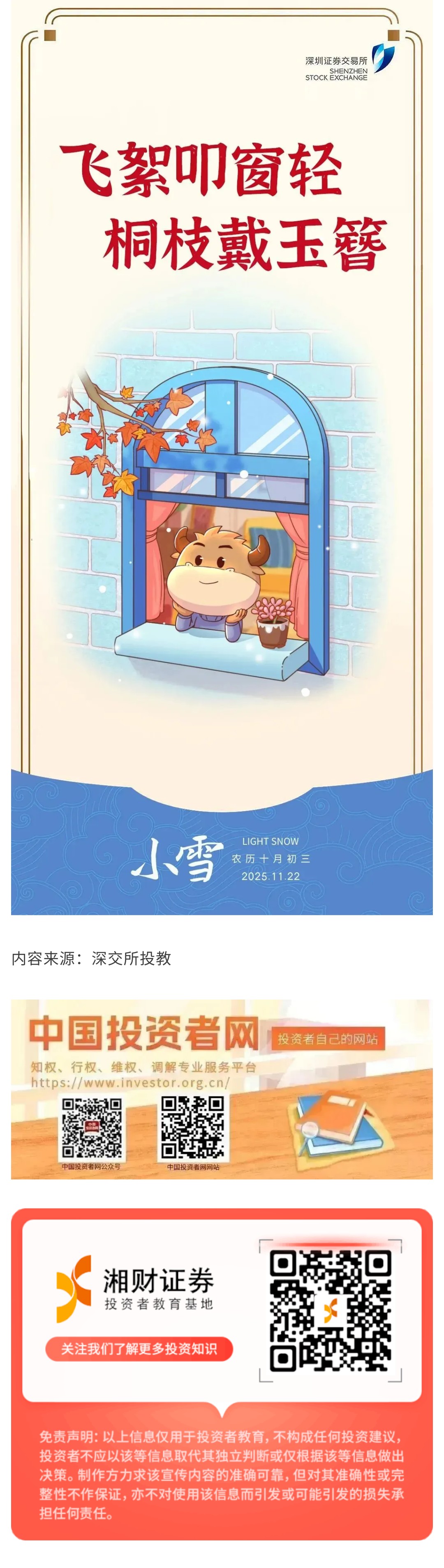 【 深交所投教 】 小雪节气