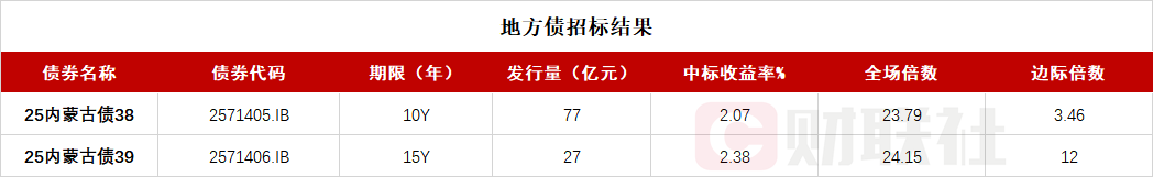 内蒙古自治区政府两期地方债已招标结束 投标倍数均在23倍之上
