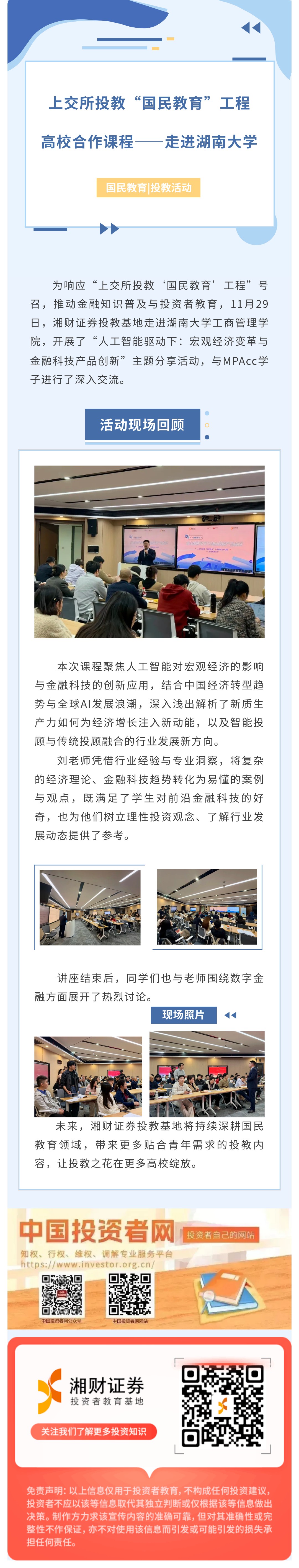 【国民教育 | 投教活动】上交所投教“国民教育”工程高校合作课程——走进湖南大学