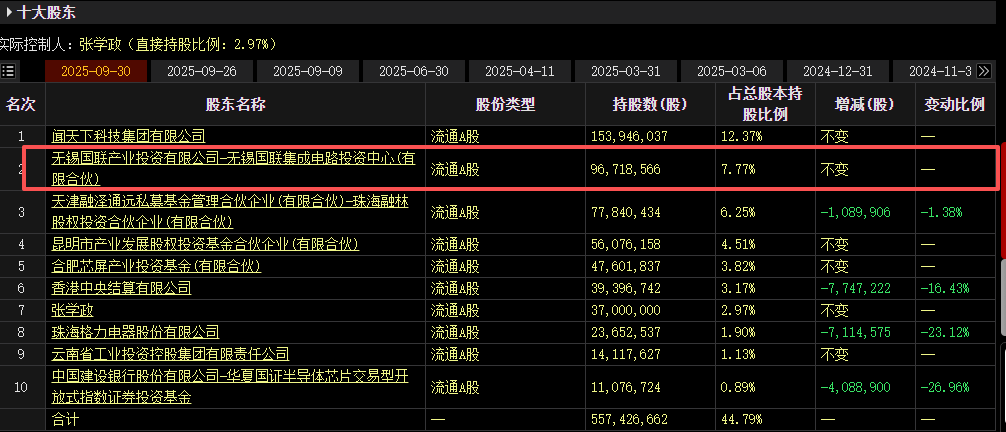 小财注:截至三季度末,无锡国联集成电路投资中心持有闻泰科技7.77%股份,为公司的第二大股东。闻泰科技11月5日公告,股东无锡国联集成电路投资中心拟减持不超3%股份。