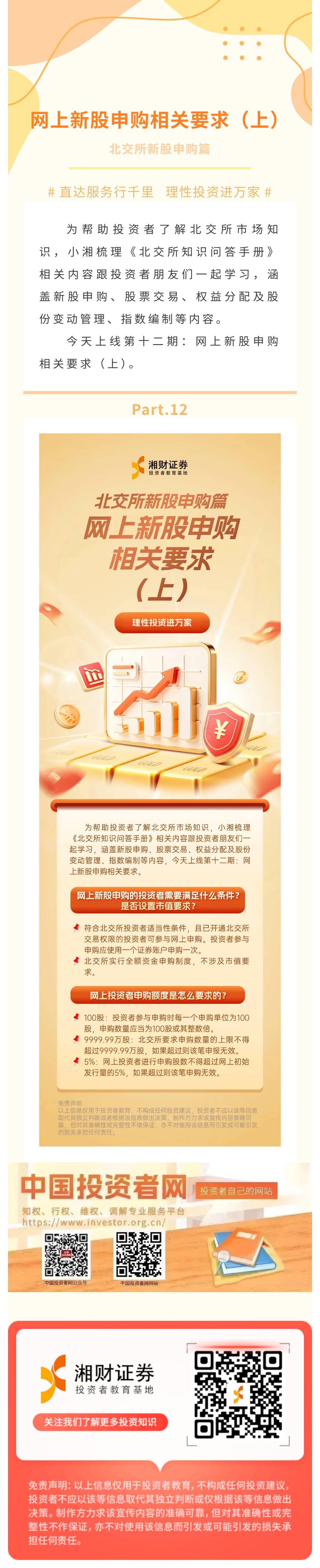 【理性投资进万家 | 小湘科普】北交所新股申购篇 | 网上新股申购相关要求(上)