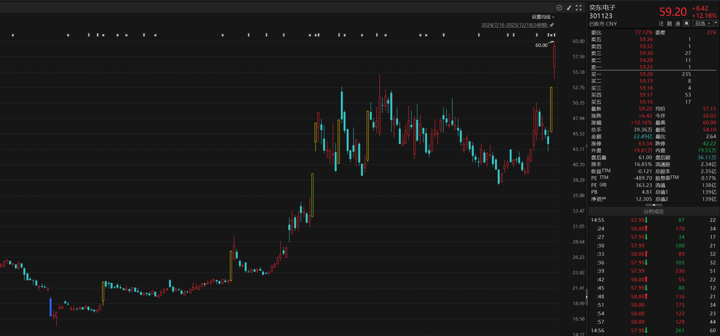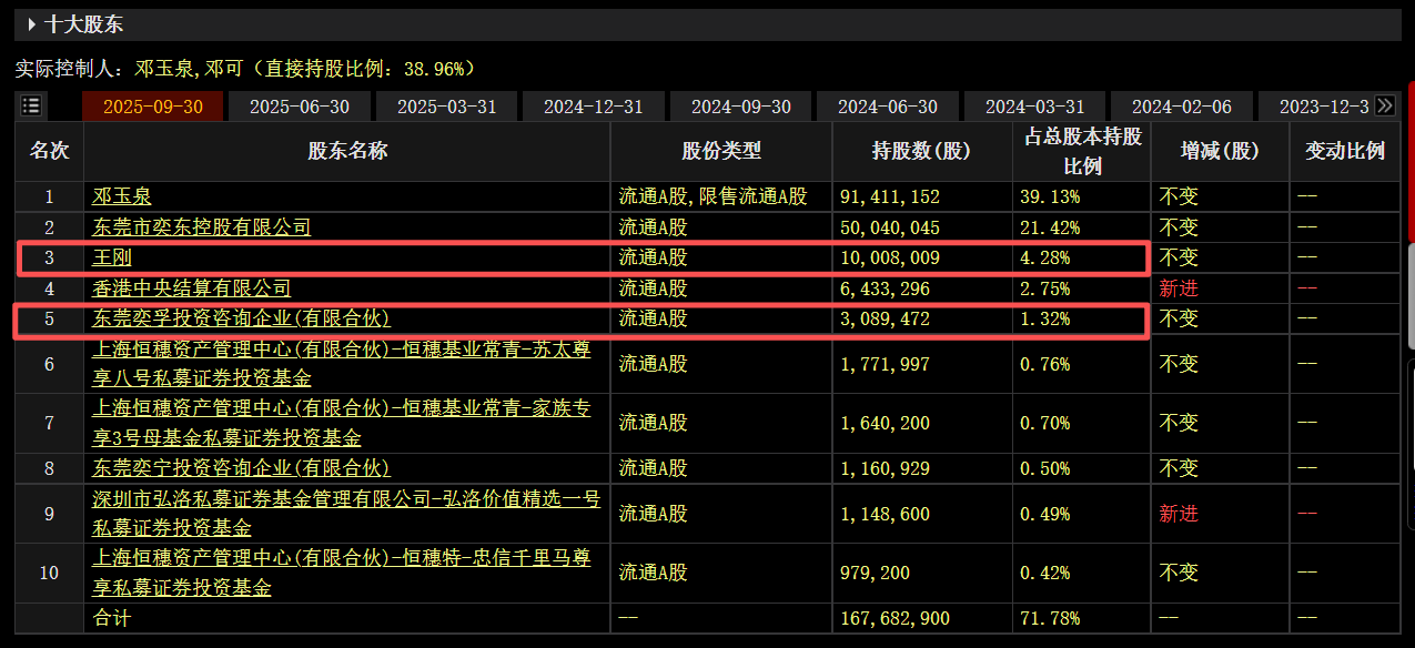小财注:截至三季度末,王刚、奕孚投资位列奕东电子第三大股东、第五大股东,持股比例分别为4.28%、1.32%。此前,奕东电子于9月16日公告,公司控股股东、实际控制人的一致行动人王刚、奕孚投资、奕合投资、奕萃投资、奕宁投资计划三个月内以集中竞价或大宗交易方式合计减持不超过691.68万股。二级市场方面,奕东电子自4月低点迄今累计最大涨幅289%。