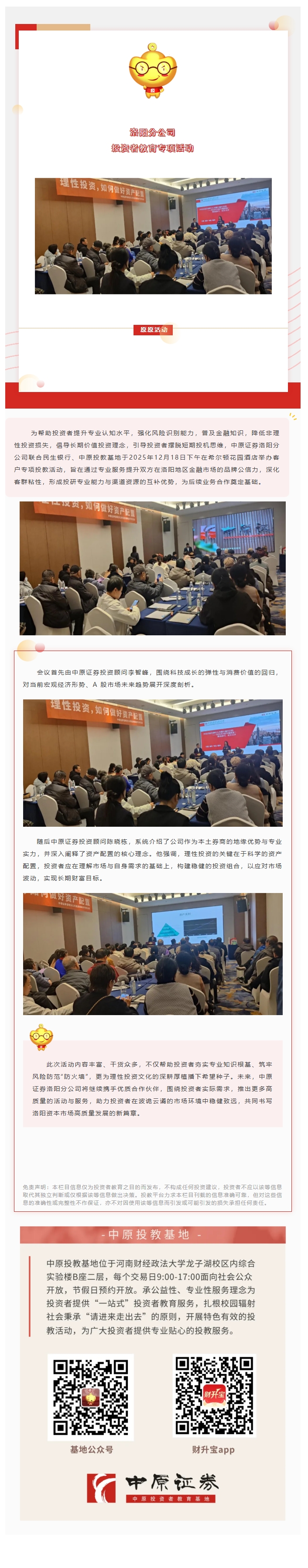 理性投资伴我行 | “理性投资,如何做好资产配置” --中原证券洛阳分公司投资者教育专项活动