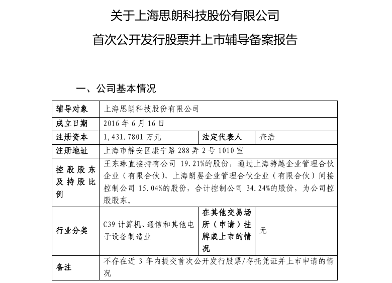 ①思朗科技在上海证监局办理辅导备案登记,辅导机构为国泰海通证券; ②作为自主创新架构先行者,思朗科技拥有万亿次代数运算微处理器MaPU的完整自主知识产权。