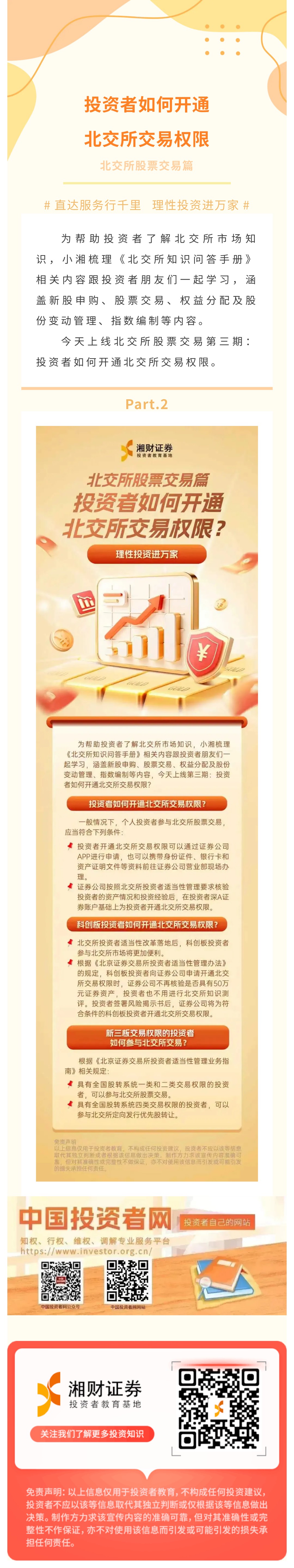 【理性投资进万家 | 小湘科普】北交所股票交易篇 | 投资者如何开通北交所交易权限
