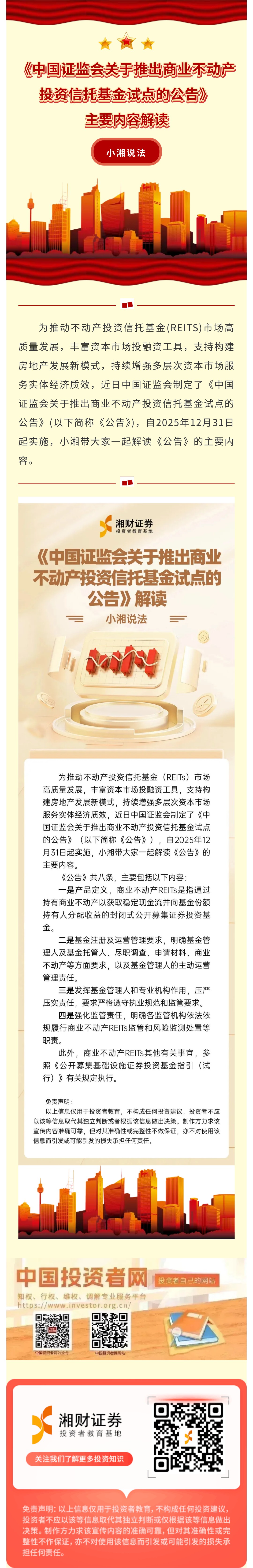 【小湘说法】《中国证监会关于推出商业不动产投资信托基金试点的公告》主要内容解读