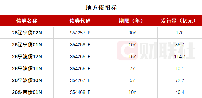 今日将发行三批次地方债 包括辽宁、宁波、湖南