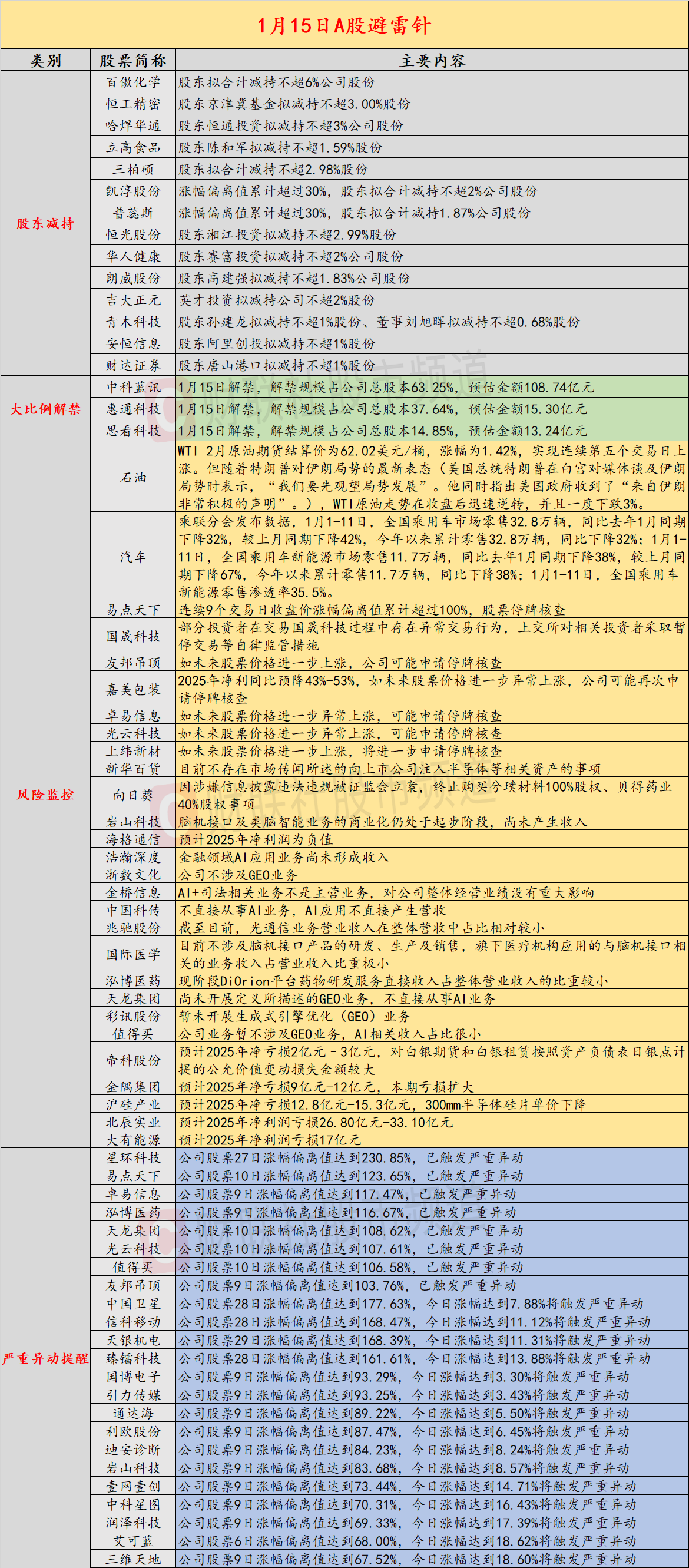 昨日公告的A股拟减持的公司数量较之前有所增多,百傲化学股东拟合计减持不超6%公司股份,恒工精密股东京津冀基金拟减持不超3.00%股份;中科蓝讯、惠通科技将迎来超三成以上解禁;目前个别大中型券商的两融资金已用完;易点天下连续9个交易日收盘价涨幅偏离值累计超过100%,股票停牌核查;市场监管总局对携程立案调查;部分投资者在交易国晟科技过程中存在异常交易行为,上交所对相关投资者采取暂停交易等自律监管措施;美股三大指数集体收跌,纳指收跌1%。