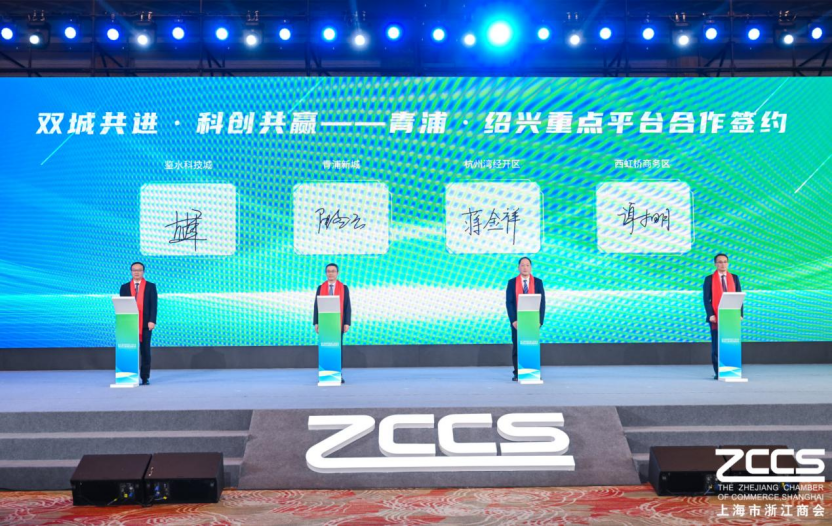 随后,大会举行了“双城共进·科创共赢——青浦·绍兴重点平台合作签约仪式”。依托长三角一体化发展战略,上海市青浦区与浙江省绍兴市围绕产业互补、人才互通、技术互融,推动两地产业园区、科创载体与企业主体深度对接。这次签约是在国家战略引领下,两个城市迈出了“协同共赢”的关键一步。这不仅是两个城市间的强强联合,更是沪浙两地产业链、创新链、人才链深度融合的生动实践。
