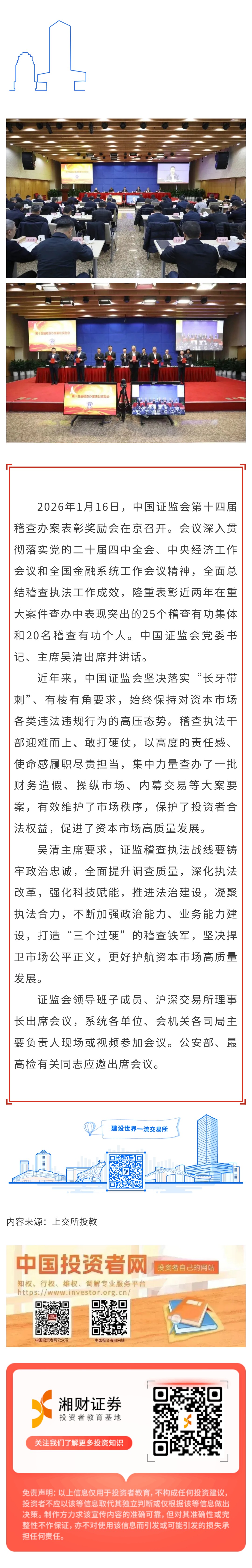 【深交所投教】中国证监会表彰稽查办案有功集体和个人