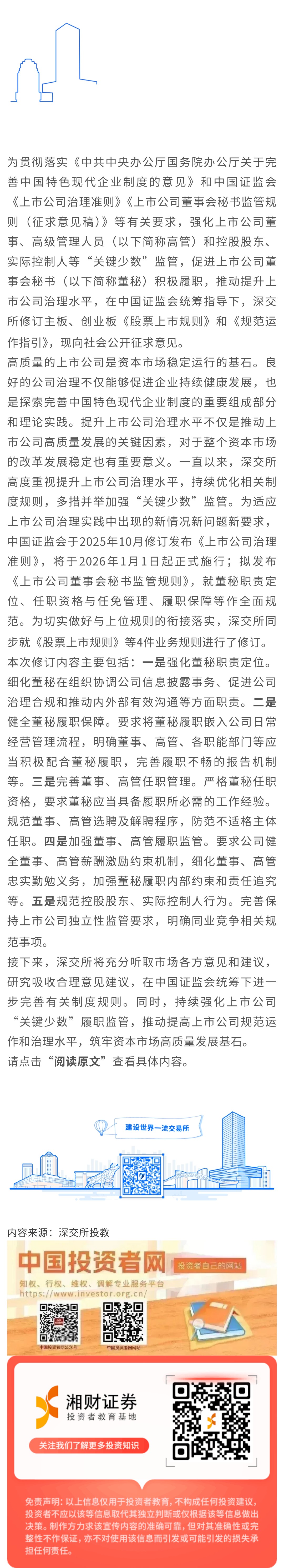 【深交所投教】深交所就修订《股票上市规则》等业务规则公开征求意见