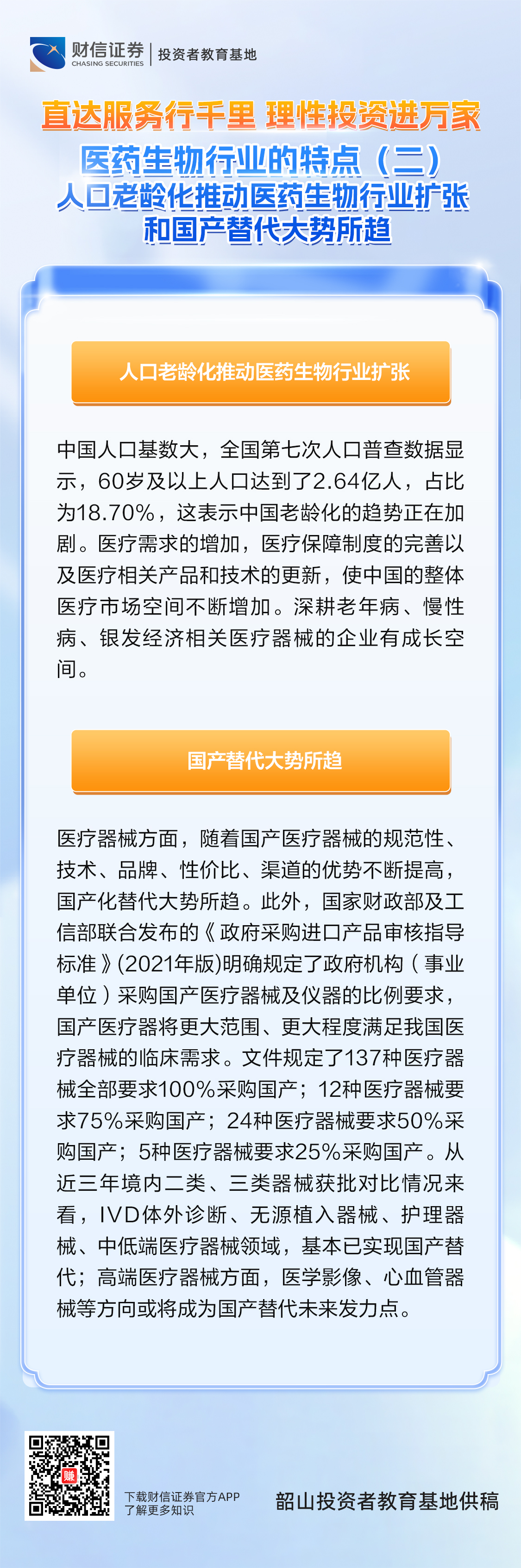直达服务行千里 理性投资进万家|医药生物行业的特点(二)人口老龄化推动医药生物行业扩张和国产替代大势所趋