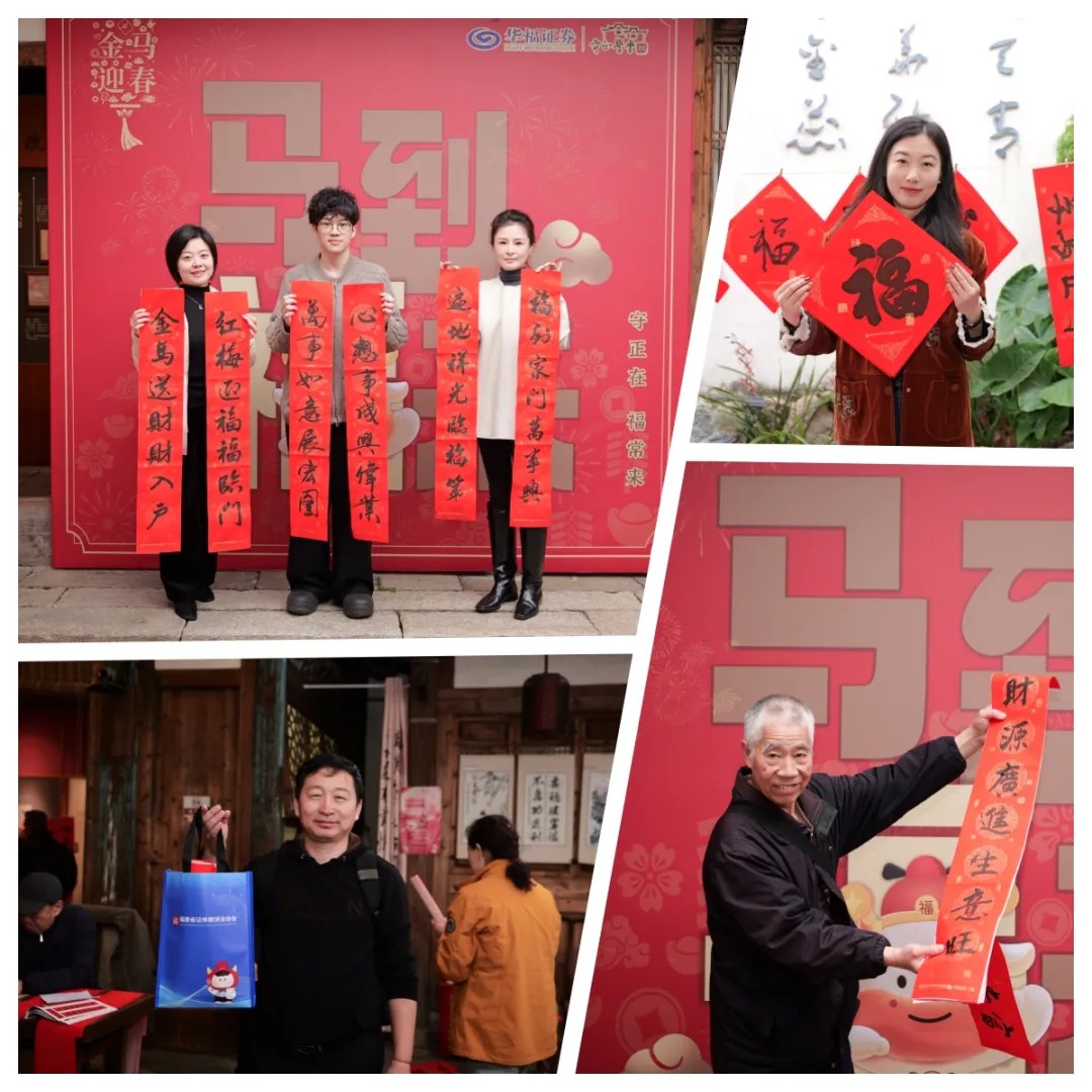 活动现场布置得喜庆祥和,春联创作区、新春拍照打卡区、“守正养马场”留言墙、中国特色金融文化主题书画作品展播等区域处处洋溢着浓浓的年味儿。其中,春联创作区成为全场焦点,六位来自福建老年大学书法学会的书法家现场挥毫,笔走龙蛇间,一幅幅兼具节日祝福与行业特色的春联新鲜出炉,既饱含着对新年的美好期许,又彰显了金融行业的价值追求。与此同时,中国特色金融文化主题书画作品同步展播,艺术美感与行业内涵的碰撞,让参与者在审美体验中深化了对中国特色金融发展道路的理解。
