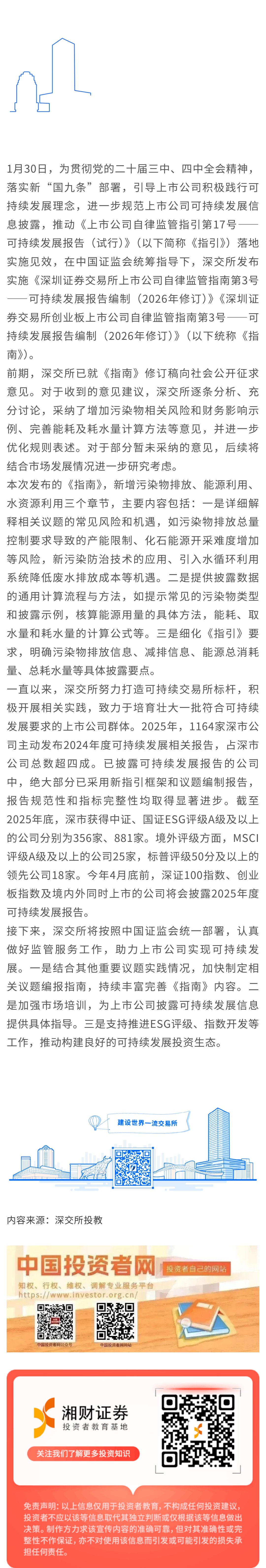 【深交所投教】深交所修订可持续发展报告编制指南