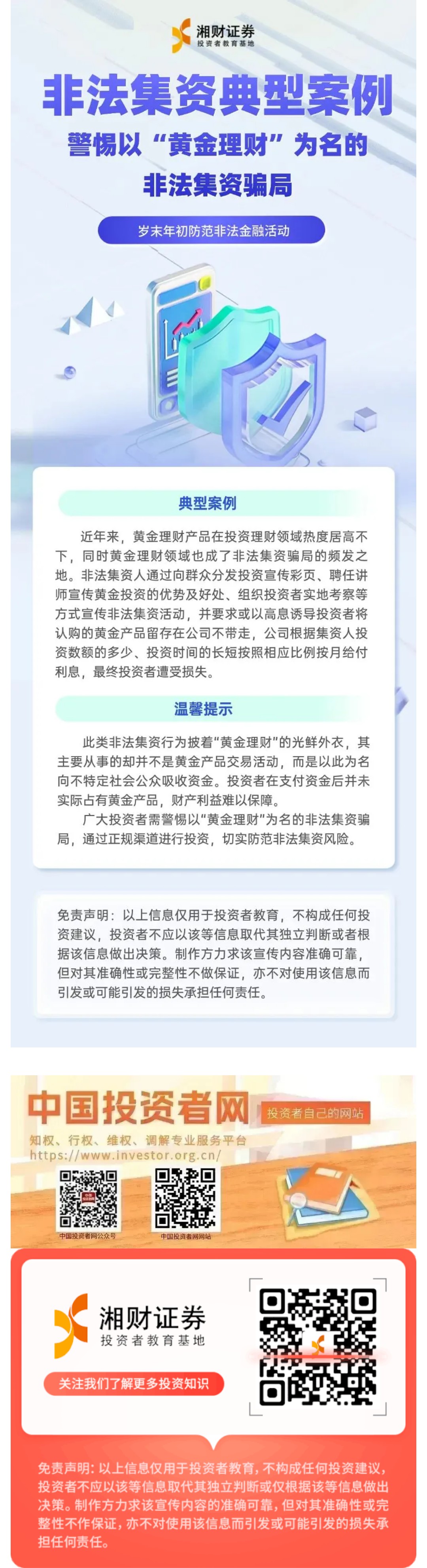 【岁末年初防范非法金融活动 | 非法集资典型案例】警惕以“黄金理财”为名的非法集资骗局