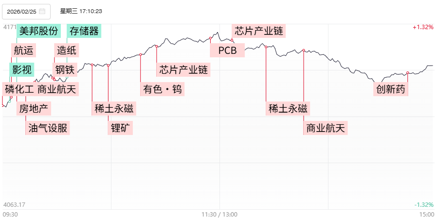 财联社2月26日电,上个交易日市场高开高走,创业板指、深成指均涨超1%,全市场超3700只个股上涨。沪深两市成交额2.46万亿,较上一个交易日放量2605亿。1)据知情人士透露,白宫拟利用美国防部开发的AI模型,为全球关键矿产贸易制定参考价格,将率先制定锗、镓、锑、钨的参考价格。同时,国内钨、稀土、锡等管制品种价格上涨趋势延续,刺激小金属概念集体爆发。此外,磷元素以及草甘膦产品被美国纳入国防关键物资的消息持续发酵,磷化工板块延续此前强势。2)2月25日美股盘后,AI超级巨头英伟达将发布最新财报,此外市场预期3月GTC下一代芯片架构将大幅提升高阶PCB层数。M9+Q布为代表的PCB产业链全天表现强势,电子布概念继续强者恒强,铜箔、钻针等上游材料也迎来加速。相比之下,此前领涨的CPO概念全天表现相对疲弱。3)2月24日,上交所上市审核委员会正式审议通过国内晶圆级先进封装龙头盛合晶微的IPO申请。该公司本次IPO计划募集资金48亿元。其中,40亿元用于三维多芯片集成封装项目、8亿元用于超高密度互联三维多芯片集成封装项目的建设。除去台积电、三星电子等巨头企业加码先进封装、测试等项目外,国产AI芯片的扩产也带动先进封装等配套产能的扩产,令设备、材料端等重新得到资金热捧。4)2月25日,上海市住房城乡建设管理委等五部门联合发布《关于进一步优化调整本市房地产政策的通知》,房地产板块受此提振表现亮眼,带动家装、建材等方向也展开补涨。不过以往被视为先行指标的港股内房股,整体表现相较于以往较为平静。