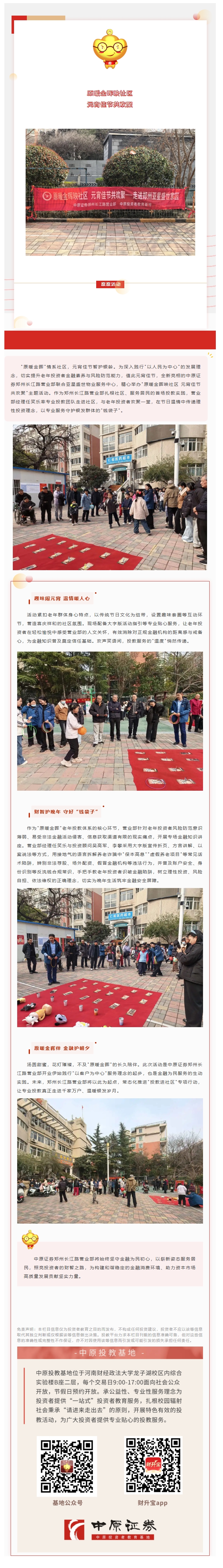 原暖金晖映社区 元宵佳节共欢聚 ——中原证券郑州长江路营业部走进社区开展老年投资者教育活动