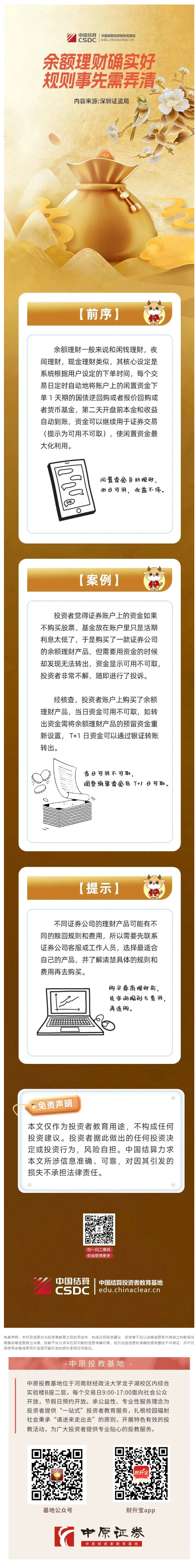 【3·15】中国结算投教 | 余额理财确实好 规则事先需弄清