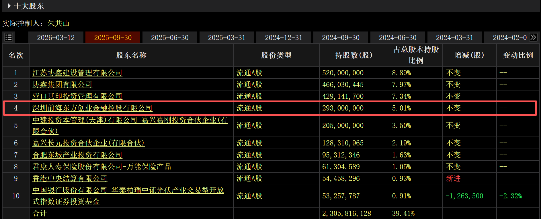 小财注:截至2025年三季度末,前海金控位列协鑫集成第四大股东,持股2.93亿股,占公司总股本的5.01%。协鑫集成2月9日公告,前海金控拟自2026年3月12日至2026年6月11日减持不超过5850.32万股公司股份,占总股本的1.01%。二级市场上,协鑫集成自2025年12月4日迄今股价累计最大涨幅达160%。