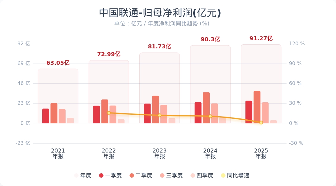 中国联通:2025年净利润同比增长1.1% 拟派发全年股利约51.12亿元