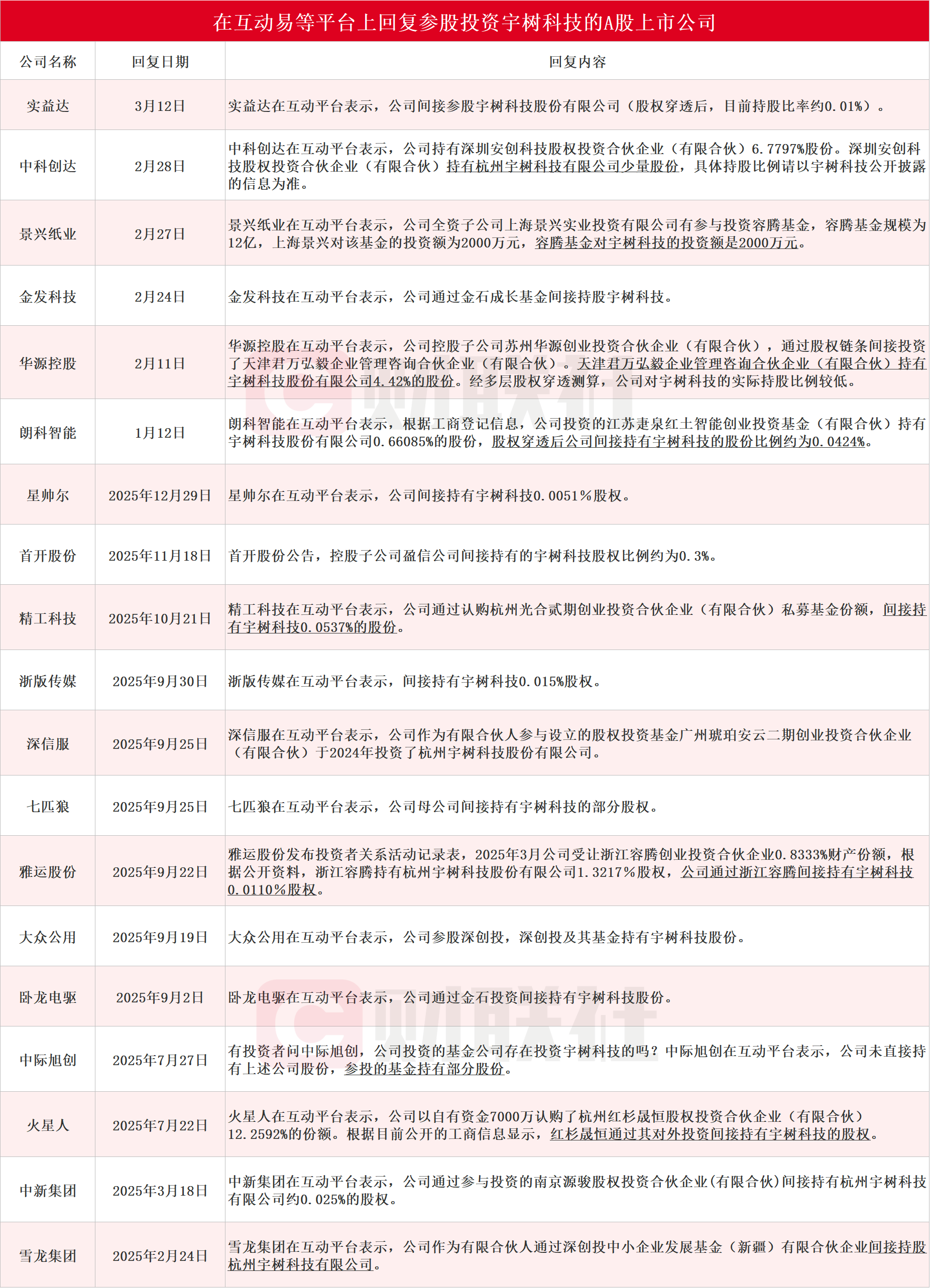 上交所受理宇树科技科创板IPO申请 近20家上市公司互动易等平台回复参股投资