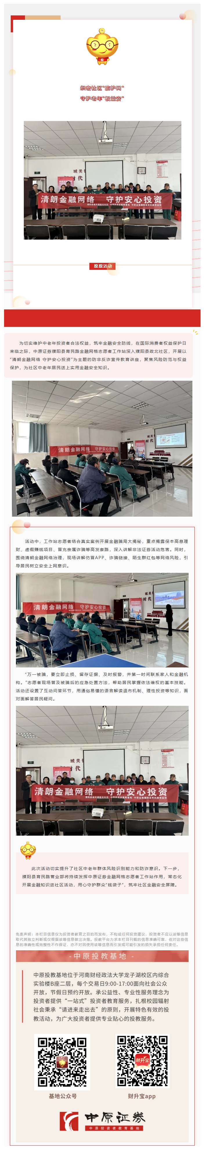 织密社区“防护网” 守护老年“权益安” ——中原证券濮阳县育民路金融网格志愿者工作站开展金融反诈进社区宣传讲座