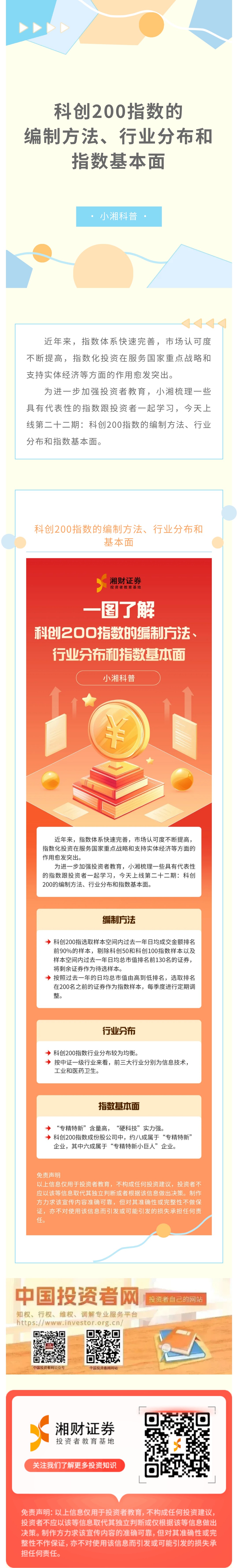 【小湘科普】科创200指数的编制方法、行业分布和指数基本面