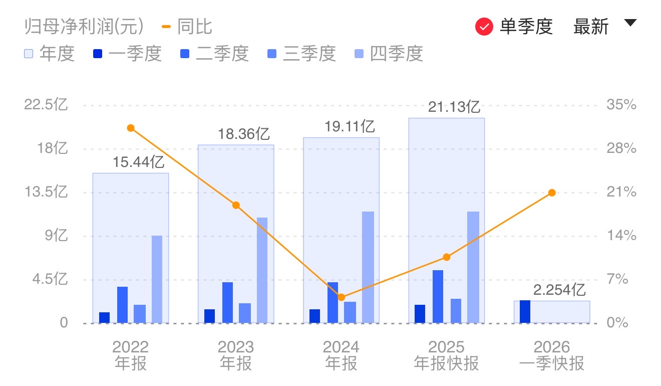 财联社4月7日电,中科曙光(603019.SH)发布业绩快报,2026年一季度实现营业总收入30.72亿元,同比增长18.8%;归母净利润2.25亿元,同比增长20.88%;基本每股收益0.155元。报告期内,公司通过持续优化产品结构、为客户提供多样化、高质量的解决方案,不断提升运营效率,保持经营业绩增长及公司参股子公司的利润增长。小财注:中科曙光2025年Q4净利11.47亿元,据此计算,2026年Q1净利环比下降80.38%。