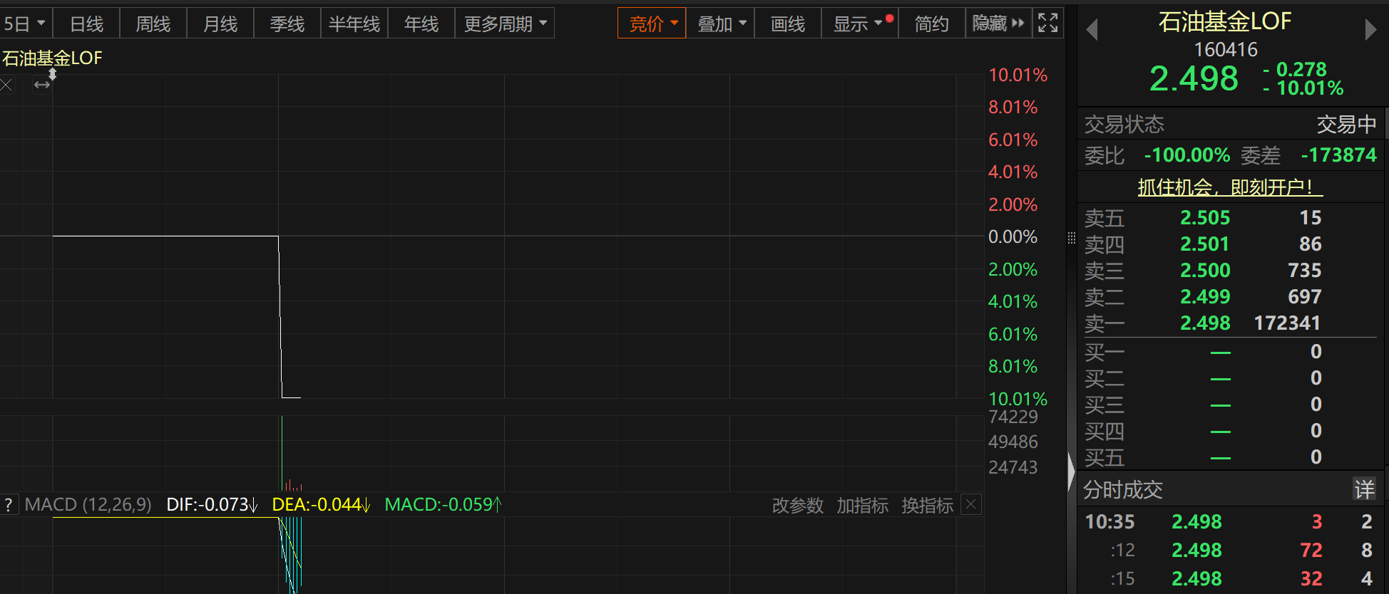 财联社4月8日电,石油基金LOF(160416)复牌直线跌停。