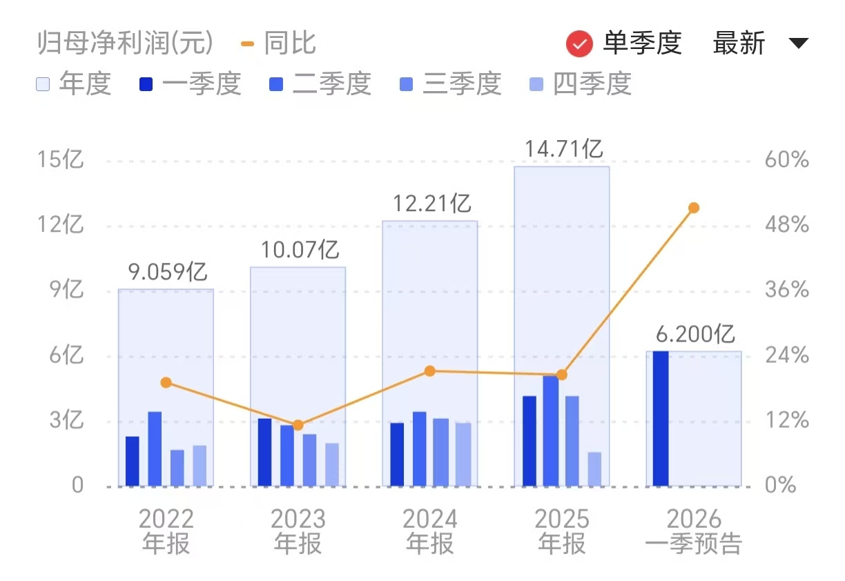 财联社4月13日电,华工科技(000988.SZ)公告称,预计2026年第一季度归属于上市公司股东的净利润为6亿元-6.4亿元,比上年同期增长46.38%-56.13%。公司的光互联业务受益于数据中心的密集建设,一季度光模块订单快速增长,400G、800G、1.6T等高速光模块出货量大幅提升,盈利同比增幅约120%。同时,新能源相关产业链的快速扩容,以及船舶行业强劲的上行周期和高端化、绿色化、智能化的发展趋势,为公司智能制造业务带来旺盛需求,公司的激光装备、智能产线订单增长较快。小财注:25Q4净利润1.49亿,据此计算,26Q1净利润预计环比增长303%-329%。