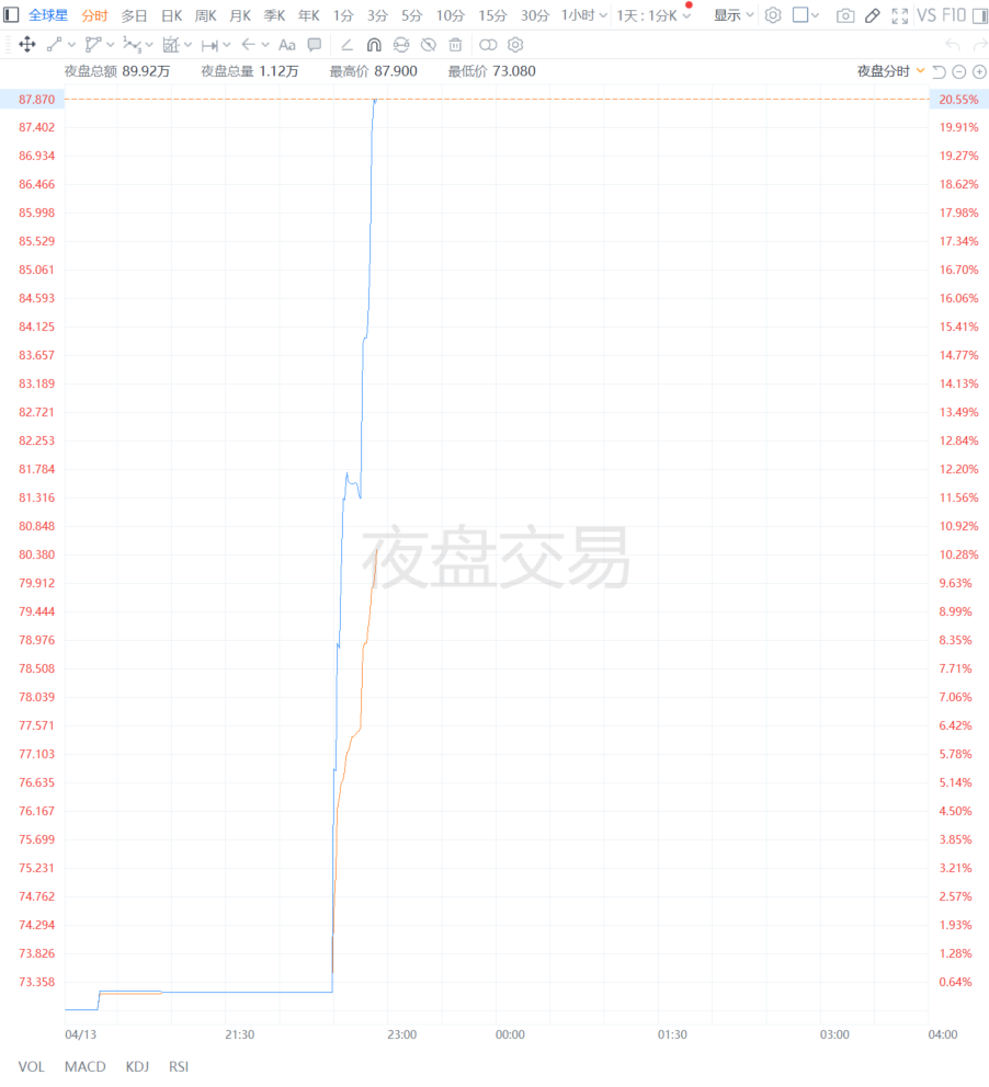 财联社4月14日电,GlobalStar美股夜盘拉升涨超20%。报道称亚马逊接近达成收购GlobalStar的交易,以期与Starlink展开竞争。