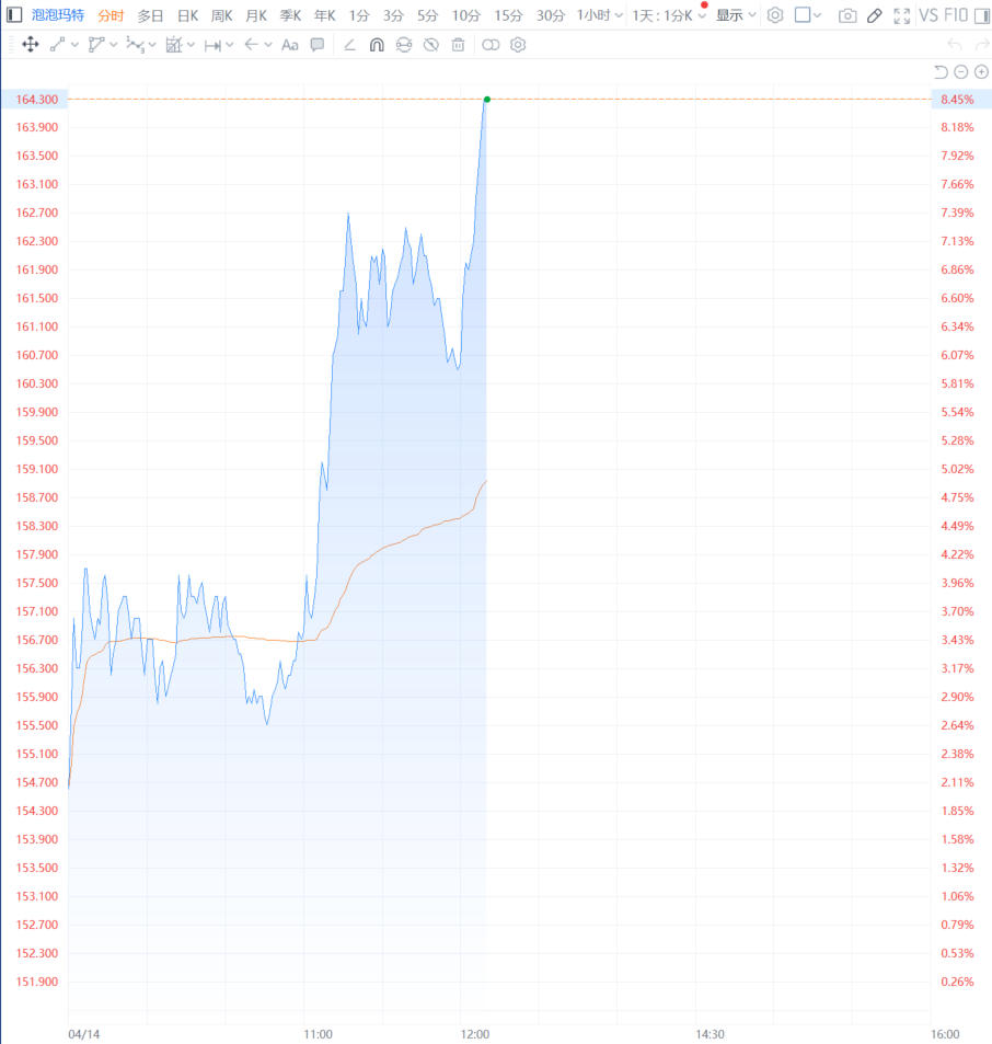 财联社4月14日电,泡泡玛特股价在香港一度上涨超8%,此前高盛指出市场对其最新推出的IP和产品需求强劲,在各大在线平台上的销售旺盛。该公司3月发布了两个备受瞩目的系列作品,分别与三丽鸥和国际足联合作。高盛的Michelle Cheng等分析师在报告中写道,截至4月10日,所有毛绒玩具系列在官方线上渠道均已售罄,这表明市场需求强劲,IP人气很高。