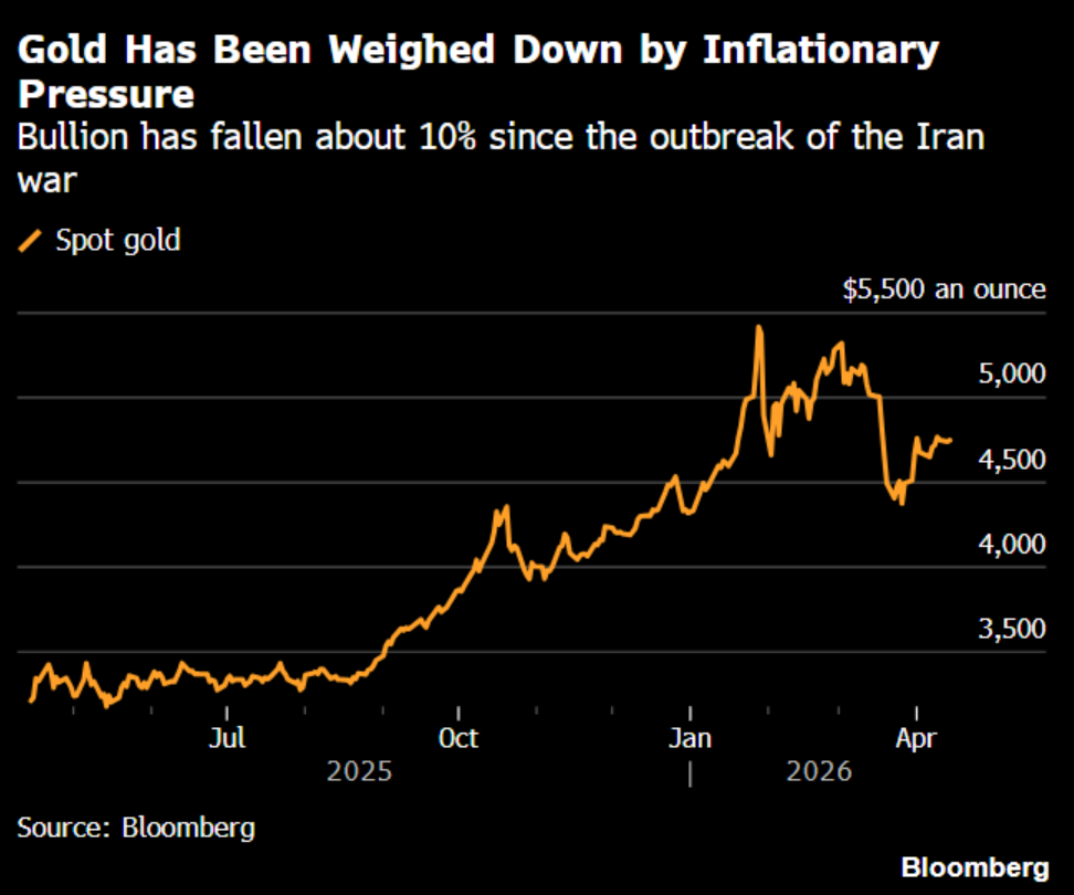 财联社4月14日电,金价在连续两天下跌后出现反弹。市场对美国和伊朗通过谈判结束战争重新燃起乐观情绪,对通胀的担忧有所缓解。金价一度上涨1.2%,至4,796美元/盎司,收复此前两个交易日的跌幅。Global X ETFs Australia投资策略师Justin Lin表示:“黄金的交易仍主要受利率预期驱动,而非作为地缘政治对冲工具,因此随着市场对局势降温的期待,黄金正与股市同步走高。”