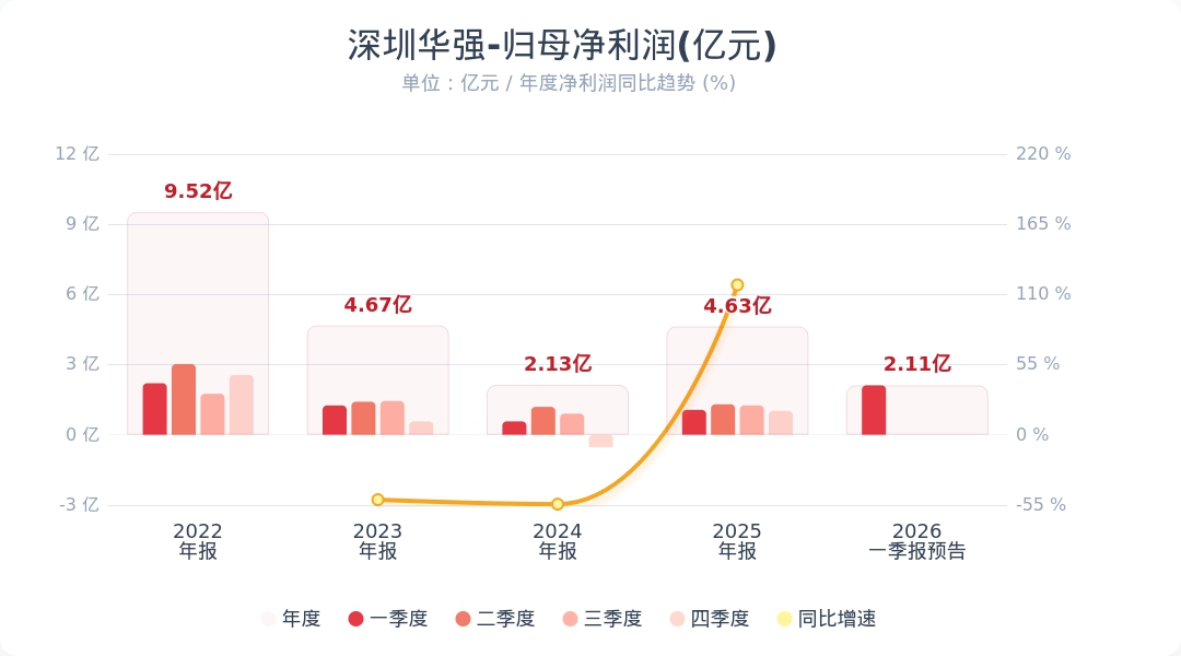 财联社4月14日电,深圳华强(000062.SZ)公告称,预计2026年第一季度归属于上市公司股东的净利润为1.90亿元-2.32亿元,比上年同期增长80%-120%。报告期内,公司持续把握AI快速发展、存储需求增加等机遇,推动电子元器件授权分销业务收入增长,其中存储类产品线出货额同比增幅约250%;同时,公司依托丰富的供应渠道数据资源优势和长尾采购业务数字化系统优势,推动电子元器件长尾采购业务收入同比大幅增长,增幅约300%。小财注:深圳华强Q1净利润预计1.9亿-2.32亿,2025年Q4净利润1.02亿,据此计算,Q1净利润预计环比增长86%-128%。