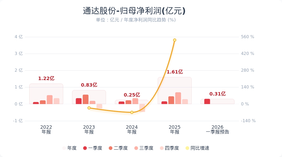 通达股份:2026年一季度净利同比预增58.16%-125.18%