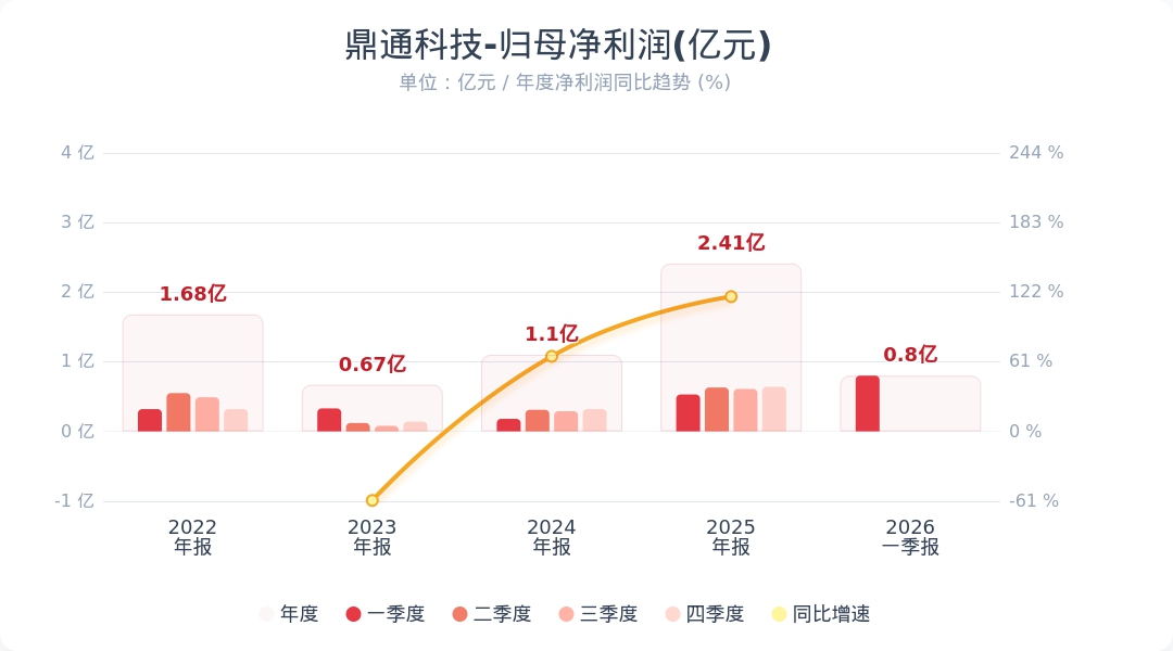 《科创板日报》15日讯,鼎通科技(688668.SH)公告称,2026年第一季度实现营业收入4.57亿元,同比增长20.78%;归属于上市公司股东的净利润为8032.74万元,同比增长51.86%。业绩变动主要由于通讯需求增加,112G和224G需求旺盛,液冷批量交付,营业收入增加,毛利率提升所致。小财注:公司Q1净利润0.8亿,2025年Q4净利润0.64亿,据此计算,Q1净利润环比增长25%。