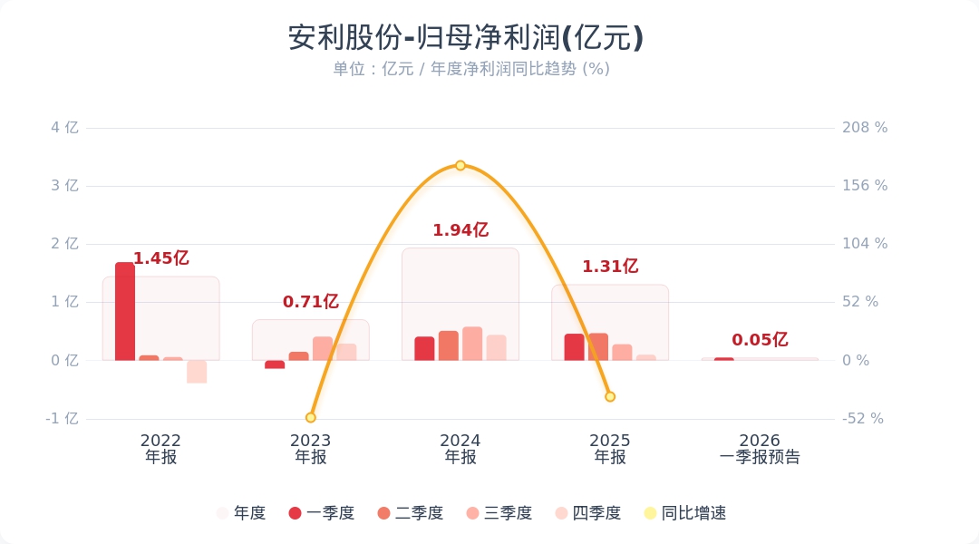 安利股份:一季度净利润同比预降87.07%—91.38%