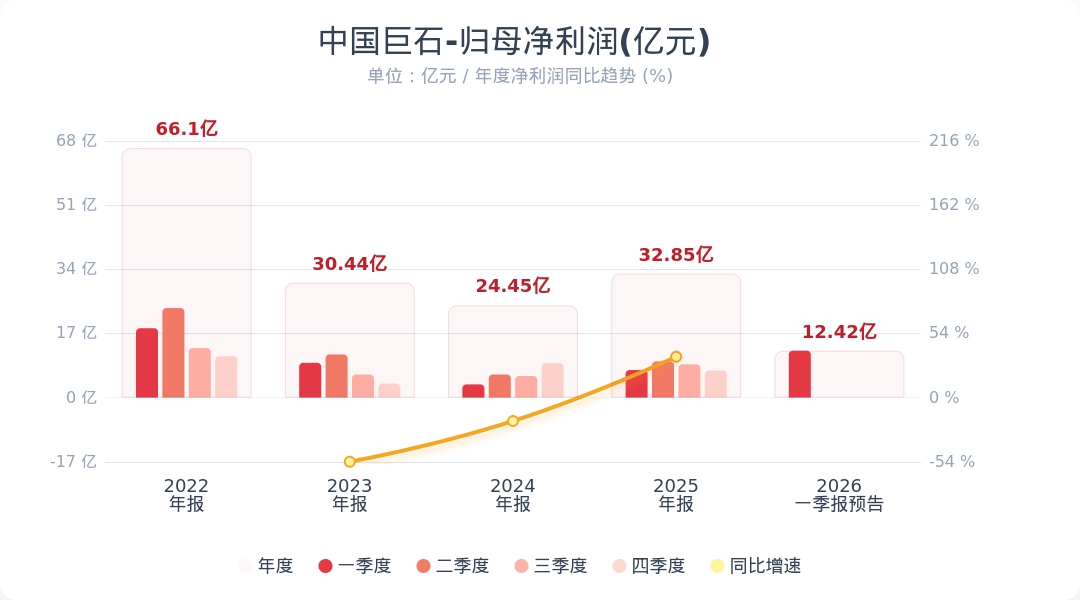 财联社4月15日电,中国巨石(600176.SH)公告称,预计2026年第一季度实现归属于上市公司股东的净利润为11.69亿元-13.15亿元,同比增加60%至80%。2026年第一季度,玻纤主要下游应用领域需求增加,产品量价齐升。小财注:公司Q1净利润预计11.69亿-13.15亿,2025年Q4净利润7.17亿,据此计算,Q1净利润预计环比增长62%-83%。
