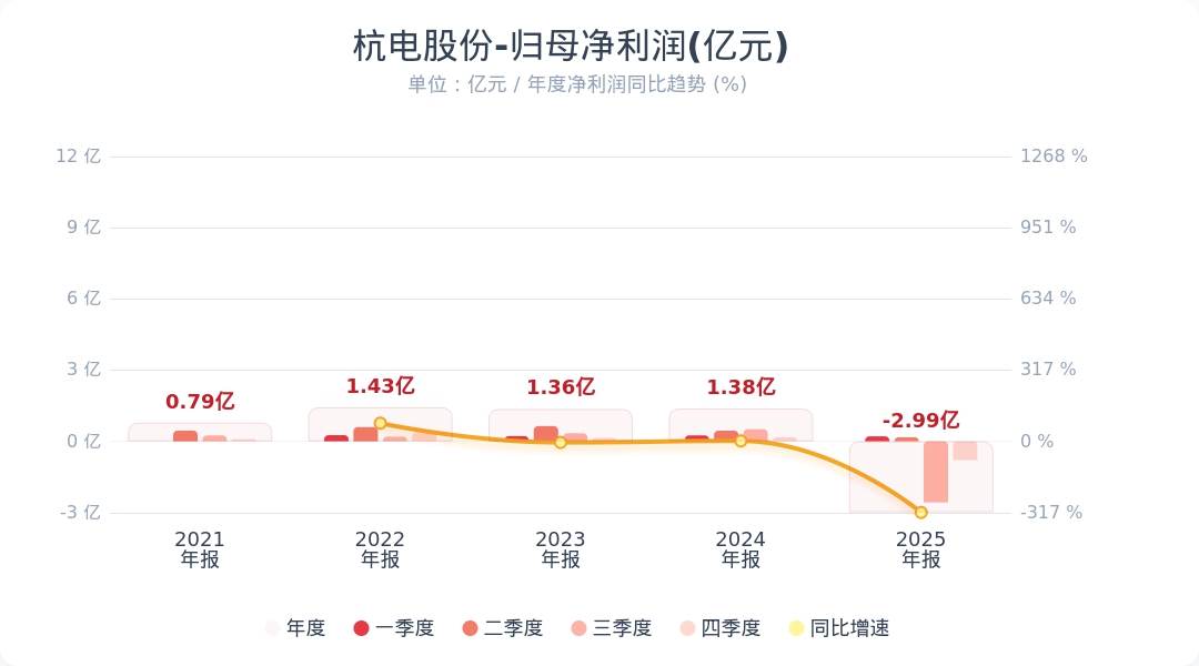 杭电股份:2025年度净亏损2.99亿元 同比转亏