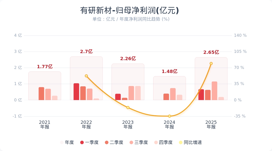 有研新材:2025年度净利润2.65亿元 同比增长79.29%