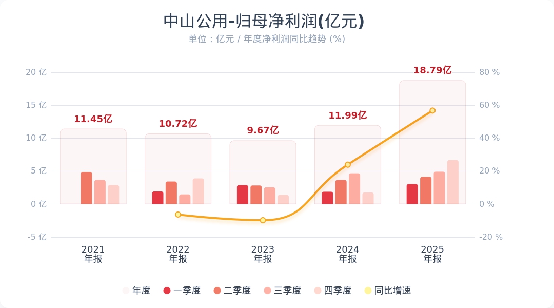 中山公用:2025年度净利润18.79亿元 同比增长56.77%