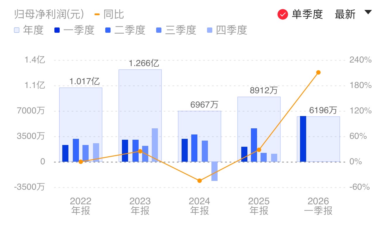 财联社4月27日电,恒工精密(301261.SZ)公告称,2026年第一季度实现营业收入3.19亿元,同比增长34.14%;归属于上市公司股东的净利润为6195.84万元,同比增长210.56%。业绩变动主要系本报告期产品产销量增长以及新增人形机器人本体业务所致。小财注:恒工精密2025年Q4净利0.11亿元,据此计算,2026年Q1净利环比增长466%。