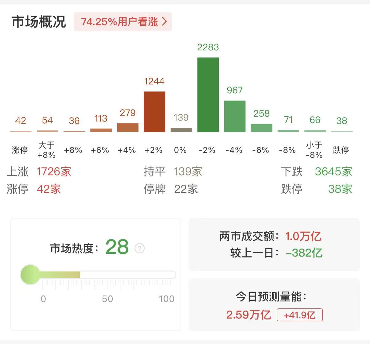 财联社4月28日电,据财联社盯盘数据显示,沪深两市成交额突破1万亿,较上一日此时缩量近400亿,预计全天成交金额近2.6万亿。
