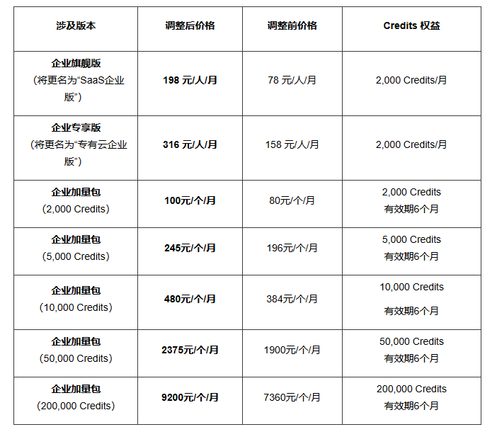 财联社4月28日电,腾讯云发布关于CodeBuddy、WorkBuddy计费方案调整的公告。其中提出,企业旗舰版将更名为“SaaS企业版”,价格由“78元/人/月”调整为“198元/人/月”。企业专享版将更名为“专有云企业版”,价格由“158元/人/月”调整为“316元/人/月”。计划于2026年5月15日起执行新的计费方案。