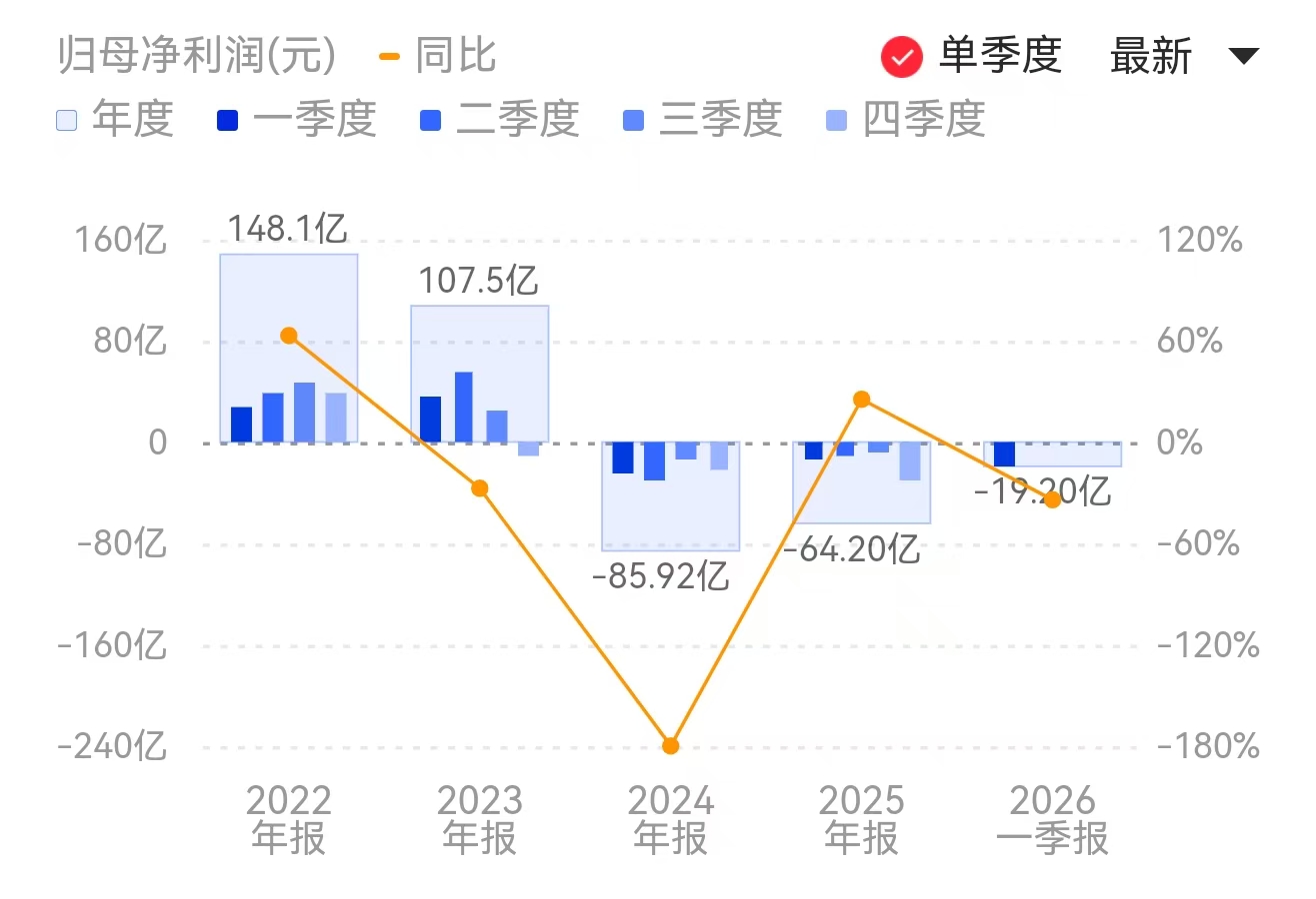 财联社4月28日电,隆基绿能(601012.SH)公告称,2026年第一季度实现营业收入111.92亿元,同比下降18.03%;归属于上市公司股东的净利润亏损19.20亿元。业绩变动主要系受汇率变动影响本期由汇兑收益转为损失,同比增加损失7.0亿元。小财注:公司2025年Q4净亏损30.16亿元。