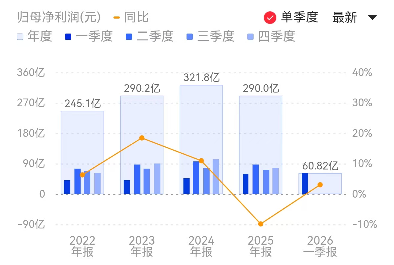 财联社4月28日电,格力电器(000651.SZ)公告称,2026年第一季度实现营业收入429.66亿元,同比增长3.52%;归属于上市公司股东的净利润为60.82亿元,同比增长3.01%。小财注:公司2025年Q4净利润75.42亿元,据此计算,Q1净利环比下降19%。