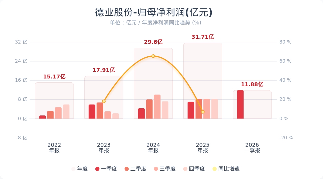 财联社4月29日电,德业股份(605117.SH)公告称,2026年第一季度实现营业收入44.59亿元,同比增长73.77%;归属于上市公司股东的净利润为11.88亿元,同比增长68.37%。报告期内,公司储能逆变器和储能电池包产品的销售收入同比实现大幅增长,从而带动公司整体经营业绩提升。小财注:公司Q1净利润11.88亿,2025年Q4净利润8.24亿,据此计算,Q1净利润环比增长44%。