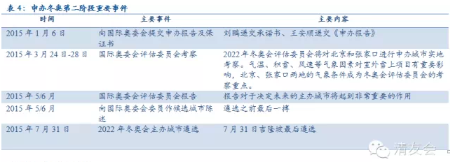可关注五条主线:一是北京和张家口当地的土地开发和场馆等基础设施建设,拥有相关建设经验尤其是参与过北京2008年奥运会的公司最为受益。二是体育产业,2013年体育产业1.1万亿,仅占GDP的0.6%,中央提出2025年要超过5万亿,冬奥会作为长期工程将成为体育产业崛起的重要催化剂。三是文化旅游产业,冬奥会以及周边开发将为北京张家口吸引大批游客。四是环保,冬奥会户外赛事对环保的要求更高。五是京津冀协同,冬奥会敲定之后,京津冀协同规划细则将很快下发,相关的产业转移与升级将随之加速,张家口将在京津冀协同中的地位将明显提升。